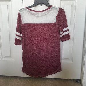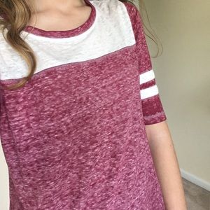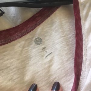 •White stripes on shoulder. Material is kinda see through, but thick enough where you don’t have to wear something underneath. Relaxed fit.