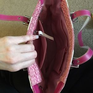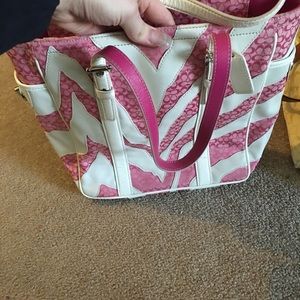 Pink & white zebra striped purse. Medium sized. Brand new condition, no rips/stains/holes etc. Price a little higher because of poshmark's fee.