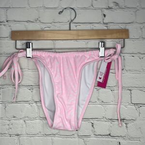 Pink and White Juniors Bikini Bottom side tie high leg scoop waist size large