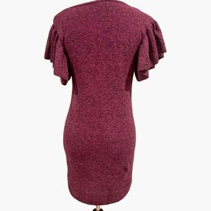 Stretchy sweater dress from express. Fabric color is pink/black speckled. Ruffle sleeves. Please see pictures for more details