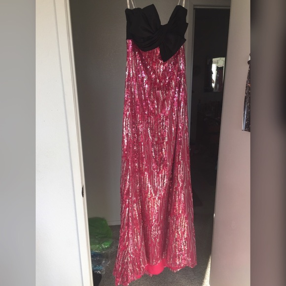 Never been worn! Gorgeous silver and pink sequin design. Black top, with bow like design in front. Back has a removable pink mesh insert.
