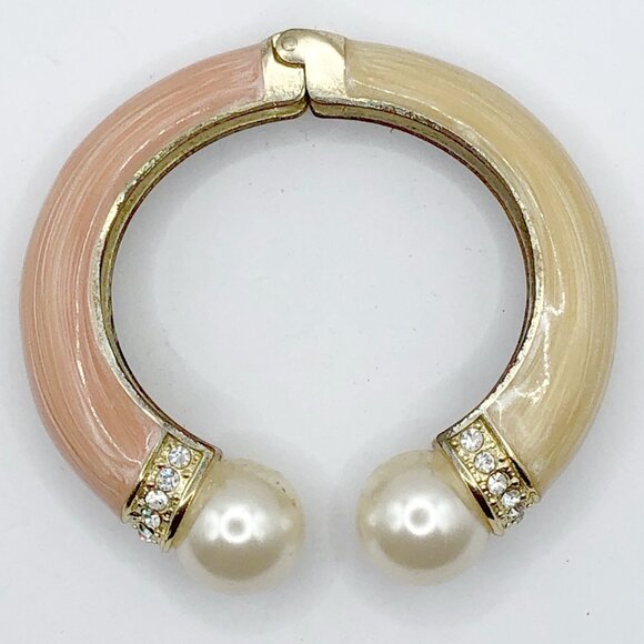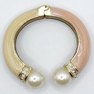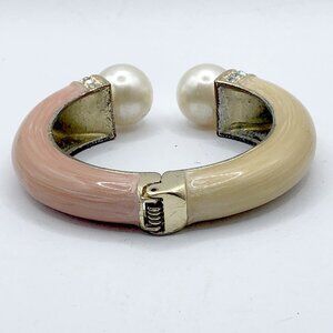 Pink and cream enamel hinged cuff bracelet