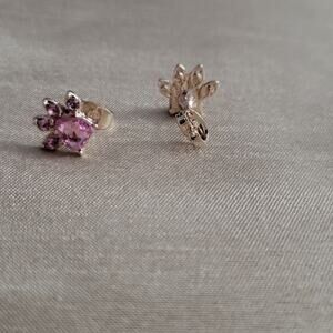 Pink and gold tone cat paws crystal earrings
