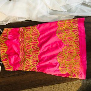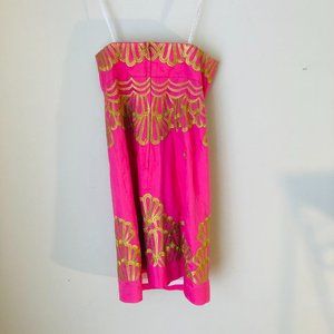 Beautiful!!! Vintage Lilly Pulitzer strapless dress with boning. This is a true size 2 (runs small). I would say this is a size 0 in most other brands I have worn. No noticeable imperfections.