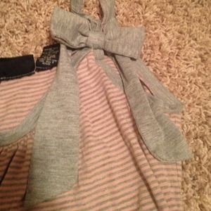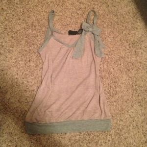 Pink and grey polka dotted tank with bow! Super flattering! Says large but fits more like a medium!