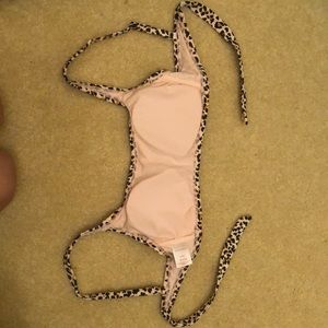 Ribbed bikini top with cheetah / leopard print (black, pink, and orange) on a light pink background