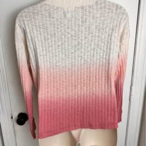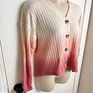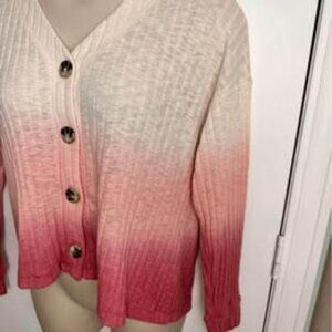 Pink and white ombre women’s button up v neck long sleeve cardigan L #0676