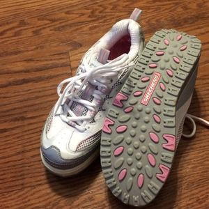 Never worn, fits true to size, "muscle toning", cute walking shoe.