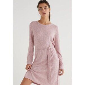 Elevate your style with the Pink and White Space Dyed Hacci Tie Waist Dress. Perfect for any occasion, this dress combines comfort and elegance with its soft fabric and flattering waist tie.