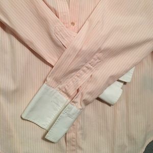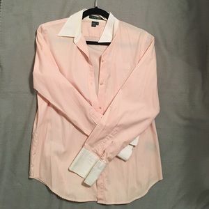 French color pink and white striped button down, RL monogram on left front breast. Worn twice.
