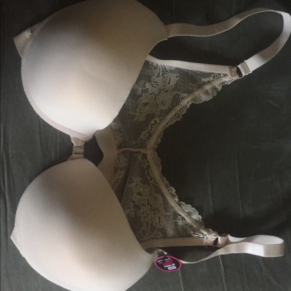 Beautiful light pink padded bra and bralette style in the back with hook up on the front.