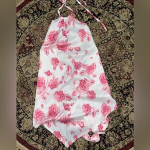 Cute sexy pink flowered white top, three straps on the back., front shaped like a diamond, flattering top Size for XL-2X