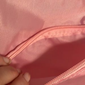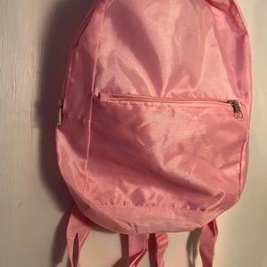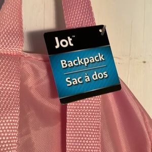 This cute pink backpack has a full zipper and another good size under that.Spot clean. By Jot. Tag includedAdjustable straps. It’s for a smaller child, so won’t hold heavy items.