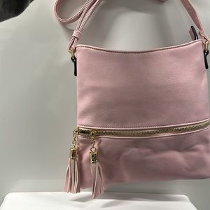 Pink bag , not leather 9.5” square , long adjustable strap