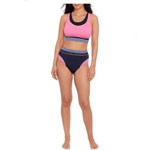 pink black trim High Neck Long Line Chlorine Resistant Quick Dry Adjustable Straps Bikini Top size medium