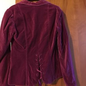 Dark pink blazer. Good condition. However there is a small rip in shoulder that can be fixed. Pic provided.