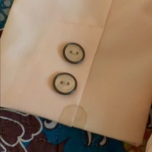 Fun lightweight blazer. Fully lined with a sweet polka dot fabric. Small stain on sleeve - I haven’t tried to clean, it’s likely just coffee.
