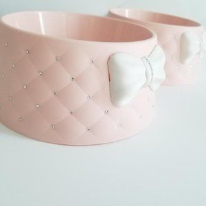 ๐พ๐พPink bow quilted pet bowls ๐พ๐พ๐These are for all the pets that are "EXTRA" ๐ถ๐ฑ๐ loaded up with Swarovski crystals... super sparkly ! ๐ฅ๐ฅ๐ฅ6x6" durable plastic easy to wipe clean. One of a kind. Soft baby pink crystal glam pet bowls ๐ Your pet wants these ๐๐ฑ๐ถ