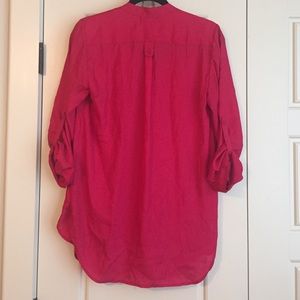 Pink polyester blouse. Perfect to layer with leggings for work.