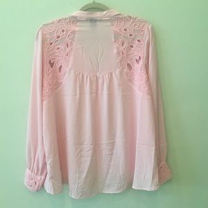 Beautiful pink blouse with intricate pattern in shoulders and cuffs