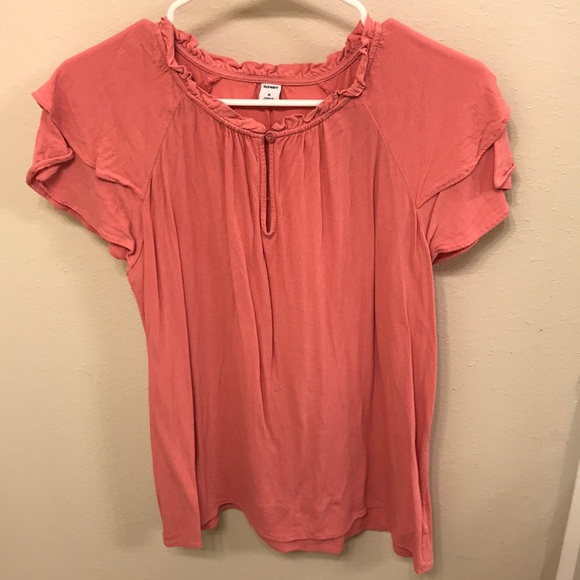 Pink blouse with ruffled sleeves and a key hole in the front. Size medium.