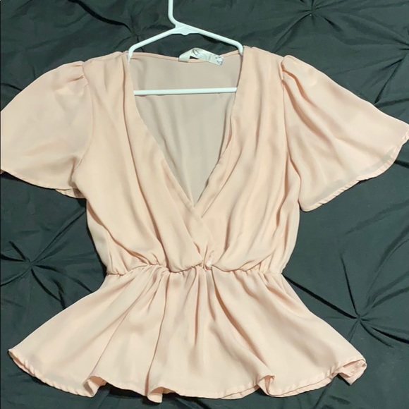 Open V pink flowy blouse