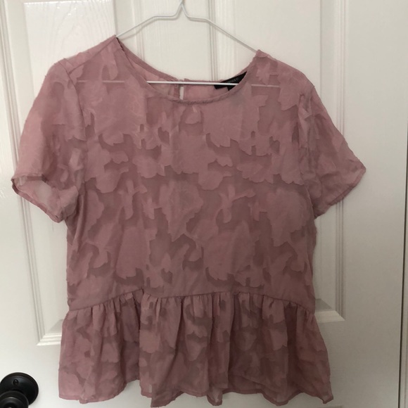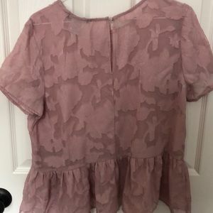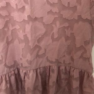 Pink blouse that flares at the end a little bit. It’s a little see through but not too much.