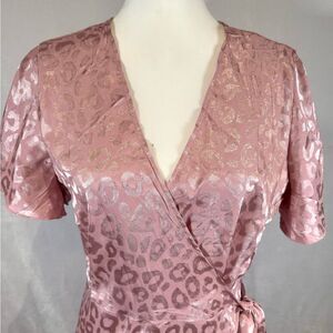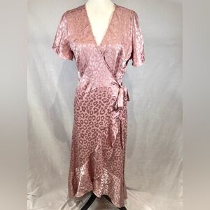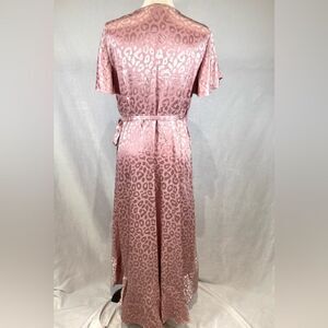 Pink blush leopard animal print satin true wrap maxi dress size medium
