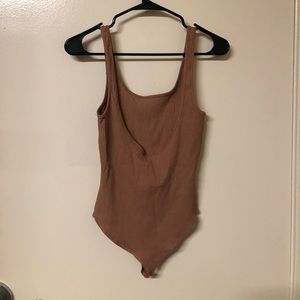 Pink scoop neck bodysuit with seamless back, never worn