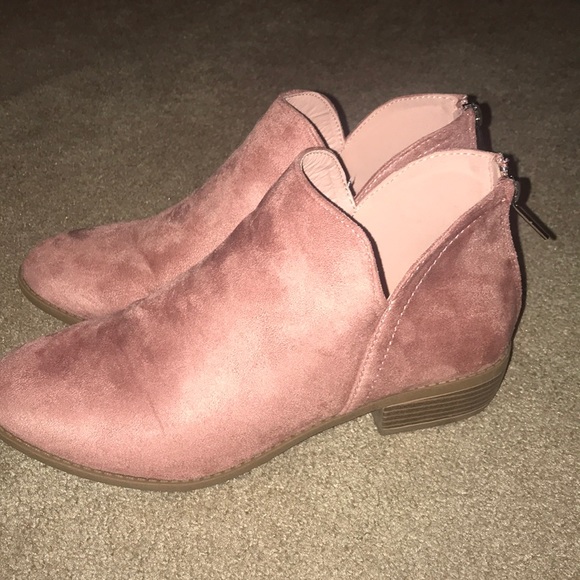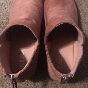 Good used condition. Zips in back. The only flaw I see is one of the zipper pulls is a little bent. Only selling because they are a bit too big for me, I normally wear an 8. Would be cute for Valentine’s Day!