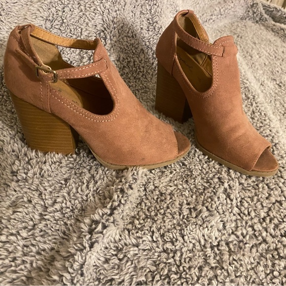 Pink booties w/ chunky heel. Size 6/7. Purchased from local boutique. Worn once.