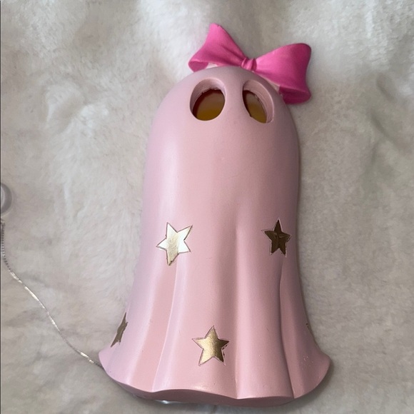 Charming pink ghost adorned with gold stars. Perfect for adding a whimsical touch to any room