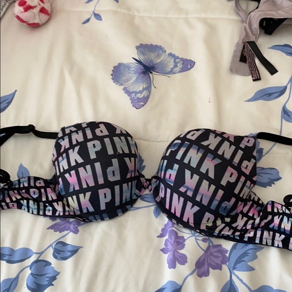 “Wear everywhere push up” bra from pink. Size 32DD. The bra does have some tears in it.