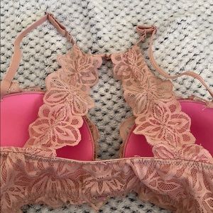 Worn a few times, in great shape. Push up. Very cool Razorback lace design. Clips in the front.