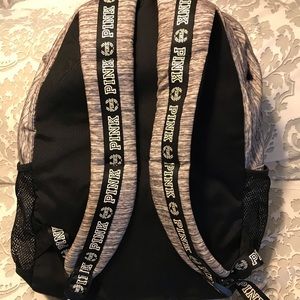 VS Pink backpack Preowned blk and wt , has little ink marks inside bottom and repaird stiching inside pocked , otherwise excellent cond price reflects no low ball offers please 😆