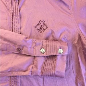 Pink cotton button down with studded neck and sleeve bottoms, vintage details. Used once, new condition.