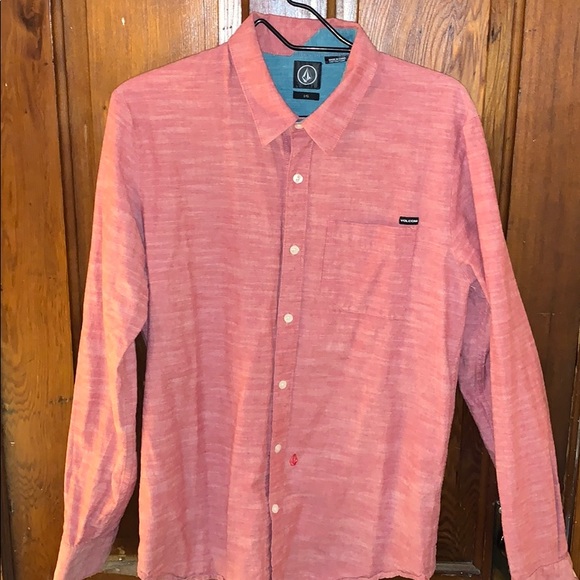 Pink Volcom button down with light blue inner collar. Also has pocket