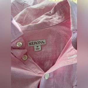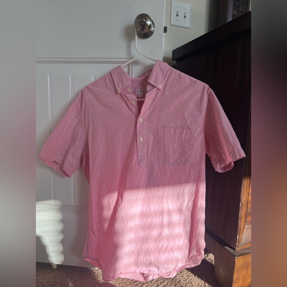 Pink short sleeve button down from Target. I’ve had it for some time now but it’s still in good condition. Comes from a smoke-free home.