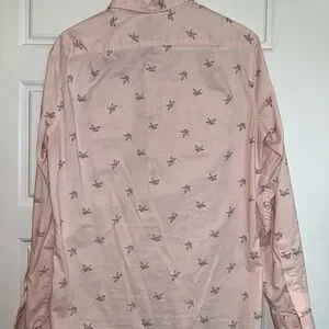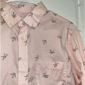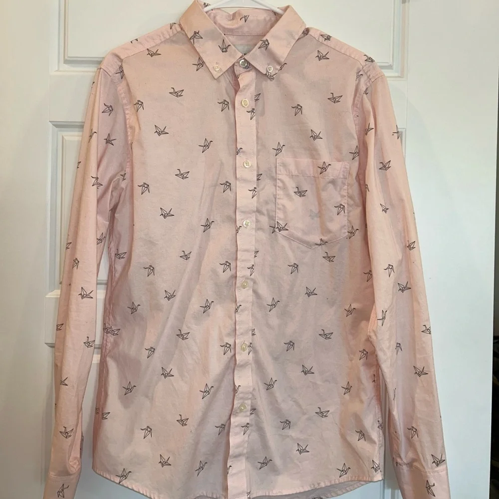 Pink button down shirt with paper crane graphics. From Target. Light weight. Medium slim fit.