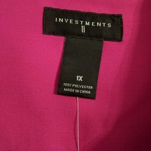Bright fushia blouse has tabs so sleeves can be worn rolled