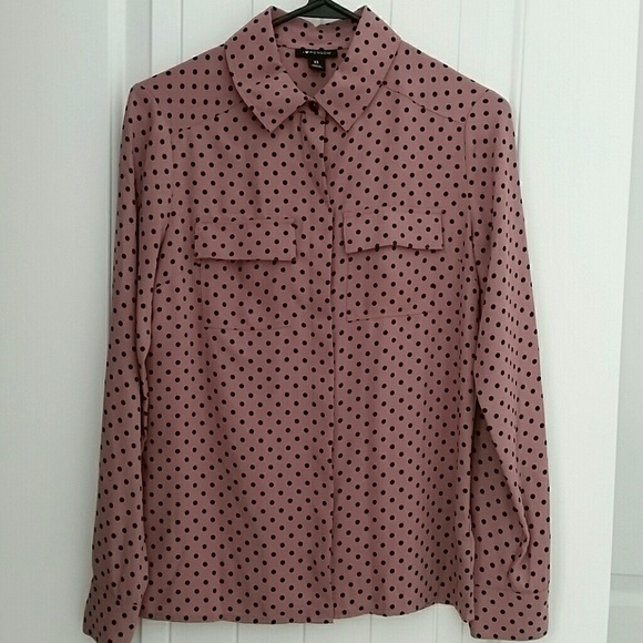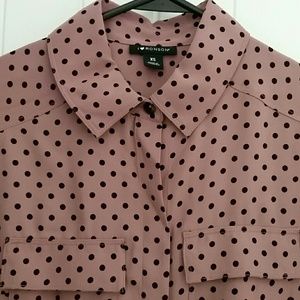 Great shirt for work. Pink with black polka-dot button down.