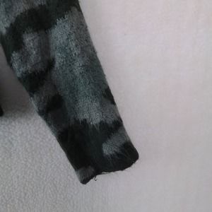 This textured fleece hoodie is super soft and cozy. It features a classic hoodie design with long sleeves, a large hood, a drawcord neck, an oversized fit, and a cropped waist. The fleece looks like wool. This hoodie is preloved and in great condition with no major flaws and minimal signs of wear.