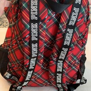 Pink by Victoria secret campus backpack. Red plaid, lots if pockets with adjustable straps. Zippered padded laptop sleeve. Mesh water bottle holder.