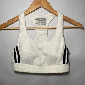 Pink by Victoria Secret Reverse Fleece Lounge Sports Bra Cream black Stripes Med