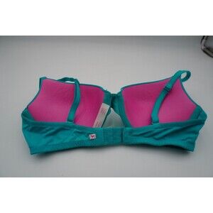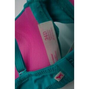 This pre-owned Pink by Victorias Secret bra in size 34D features a vibrant turquoise color with a smooth, seamless design. It is lightly padded and underwired for optimal lift, support, and shaping. The adjustable straps allow for a customized fit, while the soft fabric ensures all-day comfort. The back closure provides a secure fastening, making it ideal for everyday wear. With its bright and stylish look, this bra adds a fun pop of color to your lingerie collection while maintaining comfort and functionality.