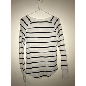 Pink by Victoria Sectet Long Sleeve Pullover Woman’s Top . White with Dark Navy Stripes . Woman’s Size Medium , 16 inches Armpit to Armpit x 26 inches Shoulder to Hem. Preowned in excellent clean condition. Feedback is always appreciated thanks for looking. Visit our store for more bargains and unique vintage items.