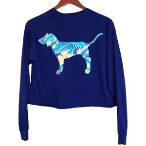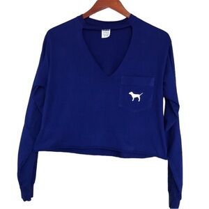 Pink by Victoria’s Secret, blue, cropped long sleeve tee shirt.