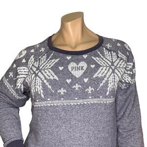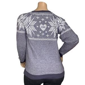 Pink by Victoria's Secret Sweater Fair Isle Snowflake Crewneck Over Size S