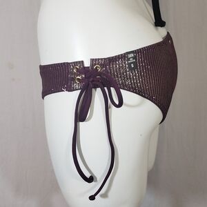 Nwt pink by Victoria secret sparkle metallic burgandy bikini bottom small size and stripes on the sides
