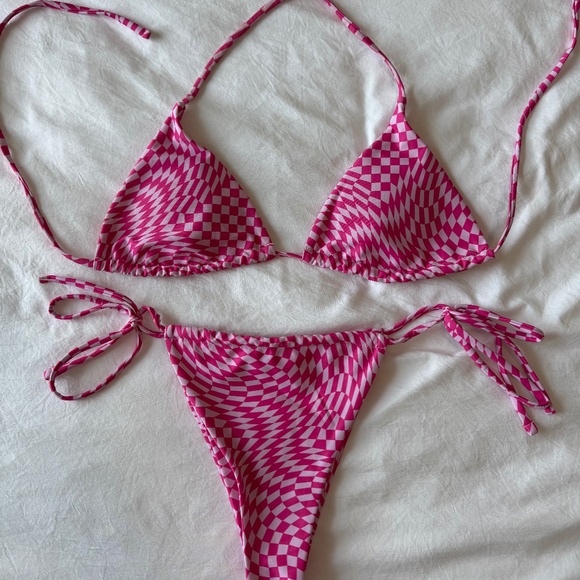 Pink checkered bikini from Copper Closet. Pic included of bikini color in natural sunlight.